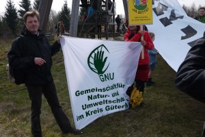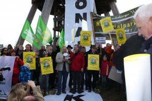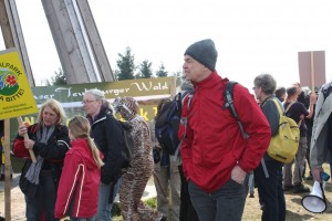 Jetzt geht die Kundgebung los. Johannes Remmel steht auf dem Transparent. „Eine sachliche Auseinandersetzung sollte sein“, sagt Werner Loke, grüner Kreisvorsitzender in Lippe. „Ein gutes NRW ist ein grünes NRW, mit einem zweiten Nationalpark“.