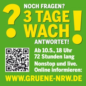 Drei-Tage-wach ist die grüne Erfindung gegen Politikmüdigkeit & Volksverdummung mit dem Motto: „Du hast noch Fragen zur Landtagswahl? Wir antworten. Von Donnerstag, 18:00 Uhr sind wir bis zur Schließung der Wahllokale am Sonntag um 18:00 Uhr ununterbrochen online und beantworten deine Fragen. Log-In Ganz einfach.