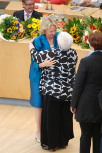 Die parlamentarische Geschäftsführerin der grünen Fraktion und die frisch gewählte Ministerpräsidentin. Beide kennen sich gut aus den Beichtstuhlgesprächen. Nach den Signaturen unter den rot-grünen Koalitionsvertrag und der erfolgreichen Wahl beginnt jetzt das politische Geschäft. Der dialogische Stil überdauert den Wechsel von der Minderheits- zur Mehrheitsregierung, so der begründete rot-grüne Anspruch.