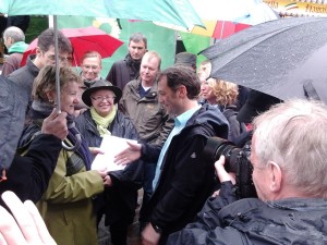 Das Foto zeigt die Übergabe der Petition an Schulministerin Sylvia Löhrmann.