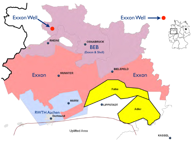 Bekanntlich hat das kanadische Unternehmen BNK Petroleum für weite Teile des Kreisgebietes Paderborn die exklusive Genehmigung für Aufsuchungsbohrungen bekommen. In der Karte von BNK Petroleum, zu finden auf der Homepage, werden die Claims als Adler und Falke (South) bezeichnet. In aktuellen Phase sind für das Bergamt Arnsberg als Genehmigungsbehörde für ganz NRW Einsprüche der Kommunen und Kreise nicht relevant. Das ändert sich mit dem bergrechtlichen Betriebsplanverfahren für die konkrete Bohrungen.