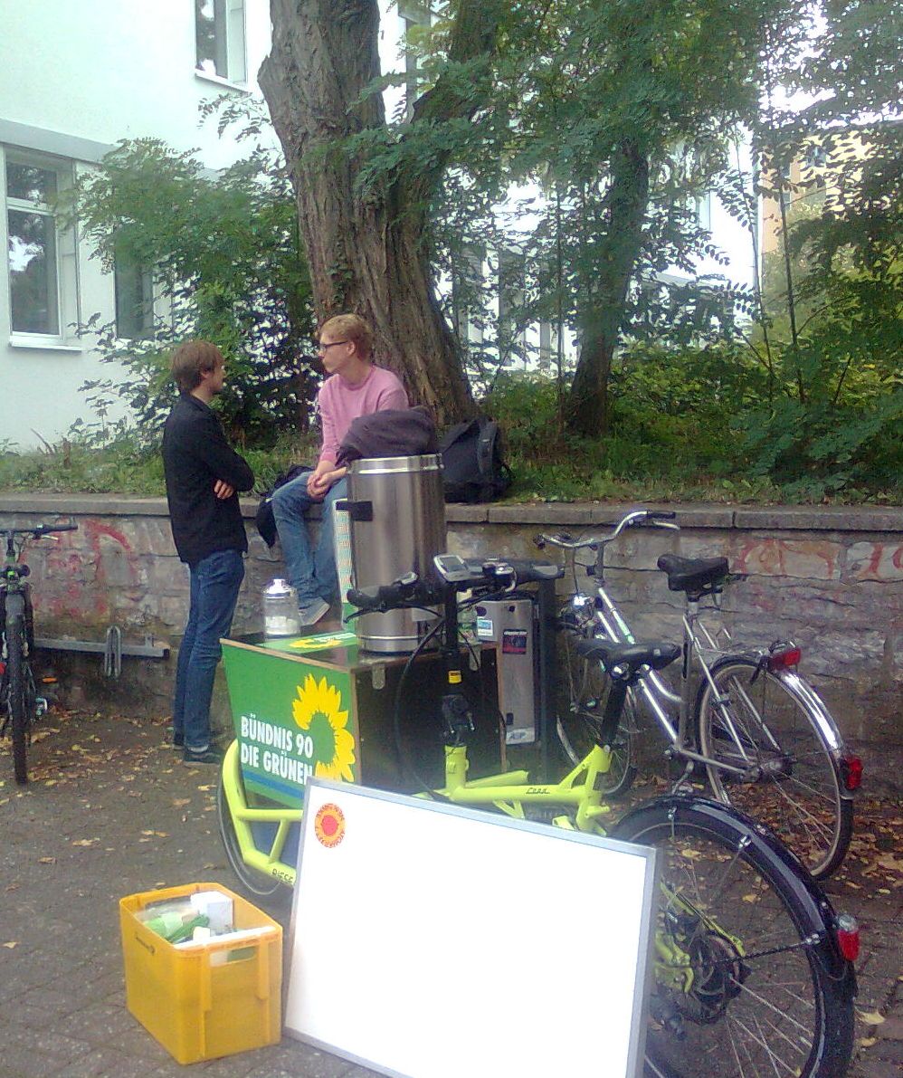 Für die Schüler vom Pelizaeus und Reismann gab es während des Wahlkampfs eine warme Überraschung. Zur zweiten Pause standen die Grünen auf dem Reismannweg und verteilten Kaffee und Grüne Infos.