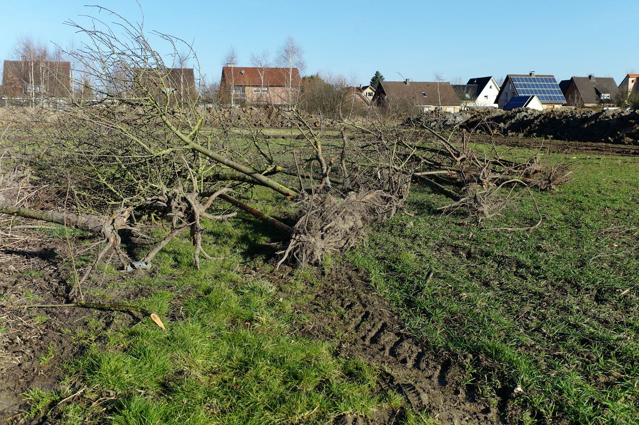 nwohner in Sande – Hohe Kamp haben in der vergangen Woche ihren Augen nicht getraut. Hier geht der Baumfrevel um. Zwischen 120 bis 150 Obstbäume und etliche weiterer Bäume entlang der Gunne wurden einfach dem Erdboden gleich gemacht. Die Obstbäume, alle im Schnitt zwischen 10 – 15 Jahre alt, wurden mit einem Bagger raus gerissen und fein säuberlich aufgereiht und abgelegt. Früher nannte man so etwas Baumfrevel. Im dreißigjährigen Krieg wurden gegnerische Obstkulturen zerstört, um einen Gegner nachhaltig zu schädigen! Bis ins 18. Jahrhundert stand in weiten Teilen Deutschlands sogar die Todesstrafe auf so eine Tat! Aber diese Zeiten sollten lange vorbei sein.