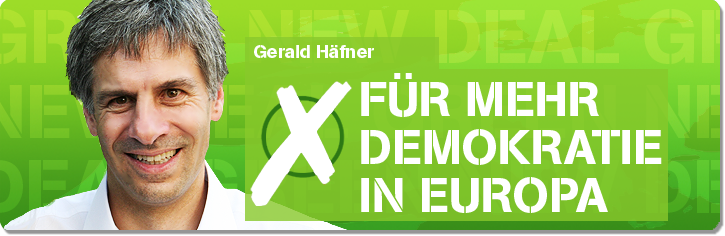 Wie kaum ein anderer ist Gerald Häfner in der Lage, Europa in seiner demokratischen Verfasstheit zu erläutern. Häfner gehört zu den Gründern der Grünen und Initiatoren von MEHR DEMOKRATIE e.V. In seiner Zeit als Bundestagsabgeordneter hat Häfner viele Gesetzesentwürfe zur Stärkung der Demokratie, der Bürgerrechte und der Bürgerbeteiligung in den Deutschen Bundestag eingebracht. 2009 wurde Häfner für die Grünen ins Europaparlament gewählt. Mit Sven Giegold von Attac und Barbara Lochbihler von Amnesty International vertrat der gebürtige Münchener auf der grünen Liste die politischen Bewegungen (Foto).