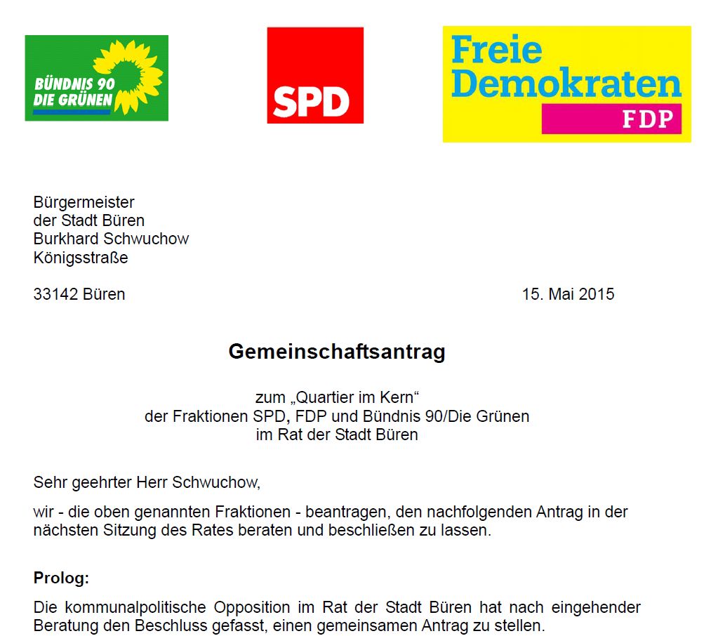Die kommunalpolitische Opposition im Rat der Stadt Büren hat nach eingehender Beratung den Beschluss gefasst, einen gemeinsamen Antrag zu stellen.