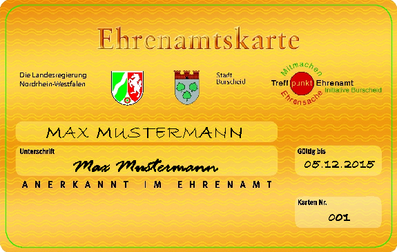 In zahlreichen NRW-Städten und Kreisen können Menschen, die sich in besonderem zeitlichem Umfang für das Gemeinwohl engagieren, mit der Ehrenamtskarte die Angebote öffentlicher, gemeinnütziger und privater Einrichtungen vergünstigt nutzen. Einen Überblick gibt http://www.ehrensache.nrw.de/