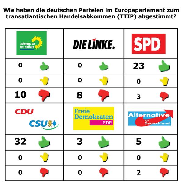 Auch durch den Druck der Bürgerinnen und Bürger ist die anfängliche Begeisterung der meisten Europaabgeordneten für TTIP verflogen. Ein Zwischenschritt ist der nun vorliegende einigermaßen kritische Beschluss. Um TTIP zu stoppen, müssen wir aber weitermachen. Ich würde mich freuen, wenn Sie bekannt machen helfen, welche deutschen Europaabgeordneten wie abgestimmt haben.“