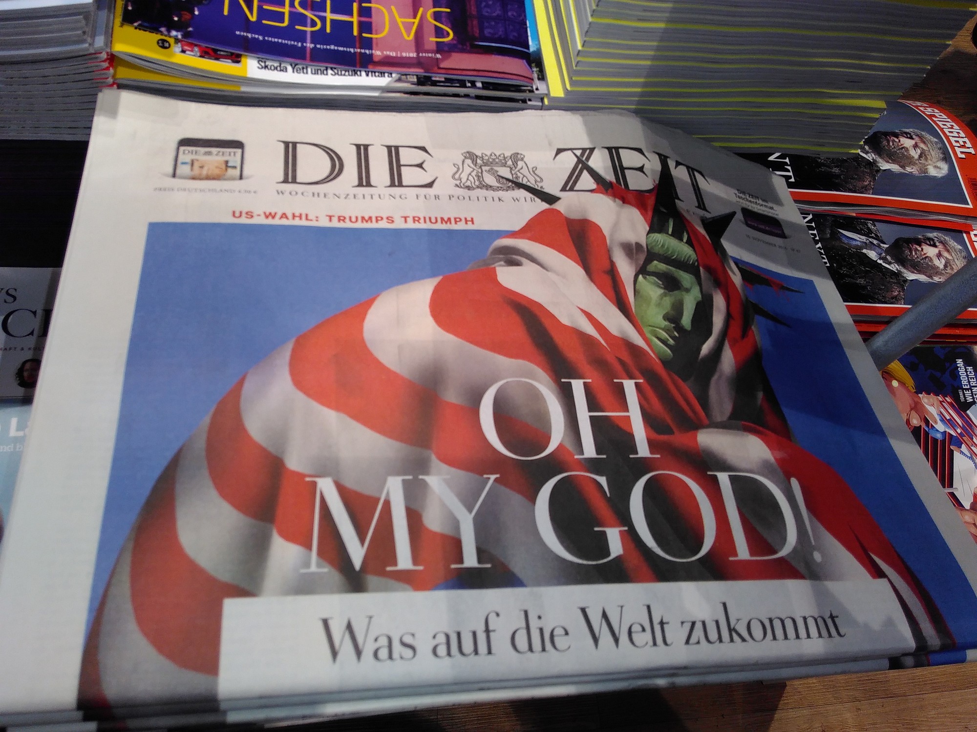 Der letzte Dienstag versetzte uns einen Schock und einen Tiefschlag, wie das aktuelle Titelblatt der Zeit zeigt. Nach einer Wahlkampagne, die ein bislang nicht gekanntes Maß an Rassismus, Sexismus und Unwahrheiten hervorbrachte, brachte Donald Trump die Mehrheit des Wahlkollegiums auf seine Seite. Ein Mann, der keine Werte kennt außer seinem Ego. Aber politischen Erfolg kann man ihn nicht absprechen – seit Dienstag.