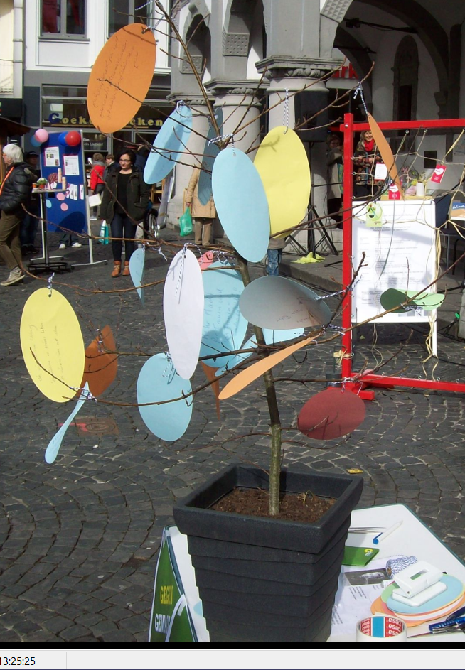 Bei der Aktion zum Weltfrauentag am 4. März gab es am Stand der Grünen Frauen einen „Wunschbaum“, an den Zettel mit Wünschen als Frau und für Frauen gehängt werden konnten. Viele Frauen beteiligten sich mit Anliegen, Ideen und Aufforderungen: