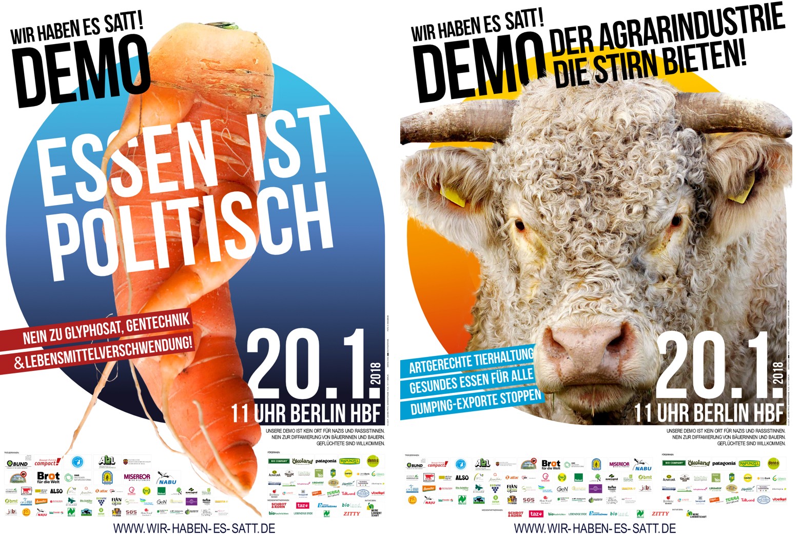 Wir haben die Agrarindustrie satt! Wir – die kraftvolle, bunte und lautstarke Bewegung – gehen für die Agrar- und Ernährungswende auf die Straße! Sei dabei, komm zur Demo in Berlin! Am 20. Januar 2018 schlagen Umwelt- und Naturschützer*innen und Anhänger*innen des Ökolandbaus im Zentrum von Berlin Alarm für eine bäuerliche und ökologischere Landwirtschaft, artgerechte Tierhaltung und gerechten Welthandel. Die Grünen kämpfen schon lange für die Agrar- und ERnährungswende.