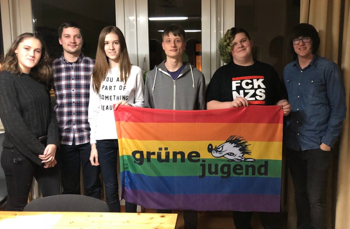 „Deswegen fordern wir als Grüne Jugend die Bundesregierung auf, den Rüstungsexport mit zahlreichen Staaten, die in bewaffnete Konflikte verwickelt sind, in denen Kindersoldaten eingesetzt werden, zu stoppen“, erklären der GJ-Vorstand. Im Bild der neu gewählte Vorstand: Katharina, Simon, Maria, Christian, Jamie und Jan.
