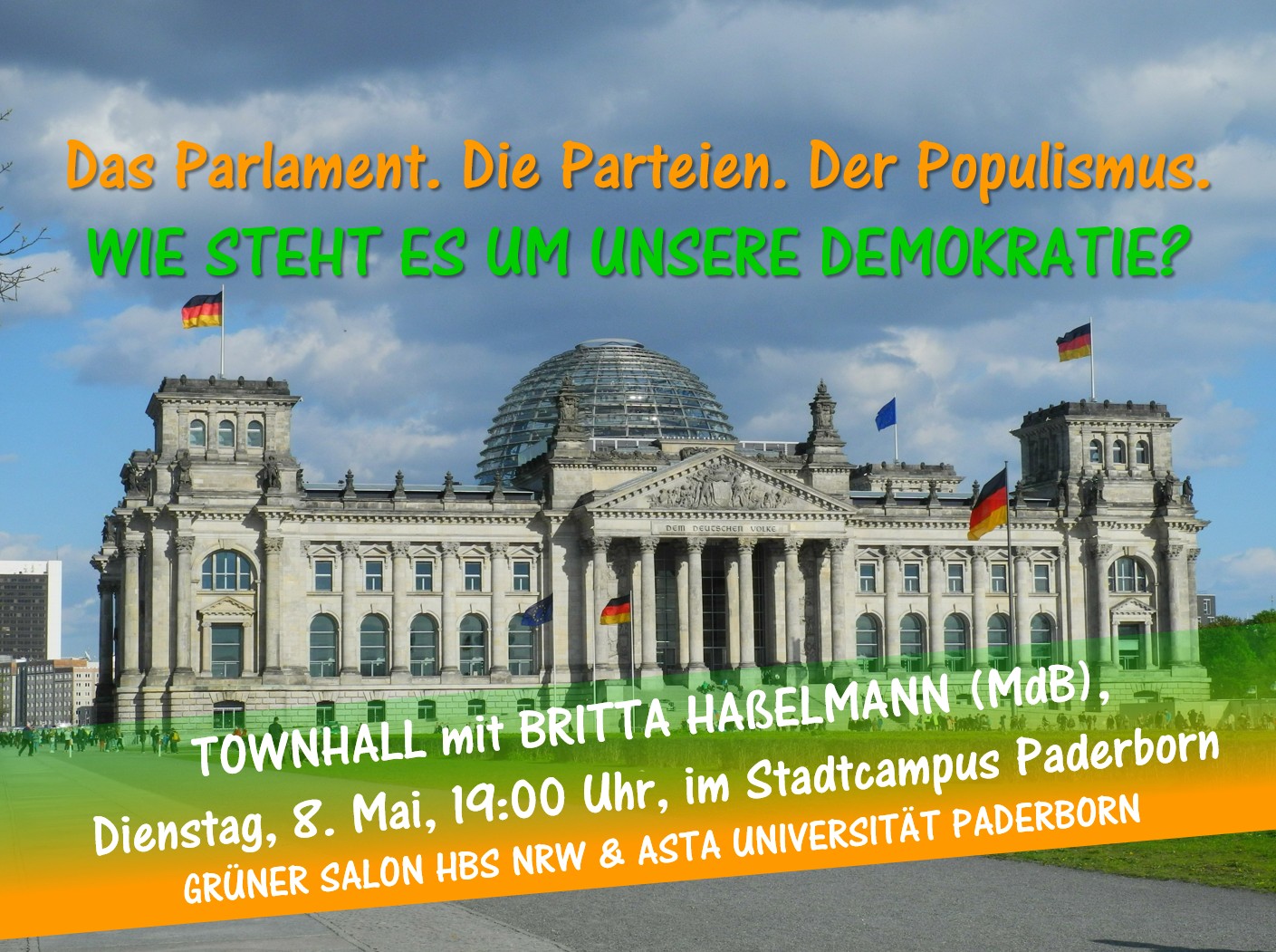 Diese Fragen debattieren wir mit Britta Haßelmann (MdB). Als Erste Parlamentarische Geschäftsführerin der grünen Bundestagsfraktion ist sie unmittelbar mit den Parlamentsdebatten, Richtungsentscheidungen und Gesetzesinitiativen beschäftigt. Beim Townhall-Format stehen Ihre und Eure Fragen im Mittelpunkt.