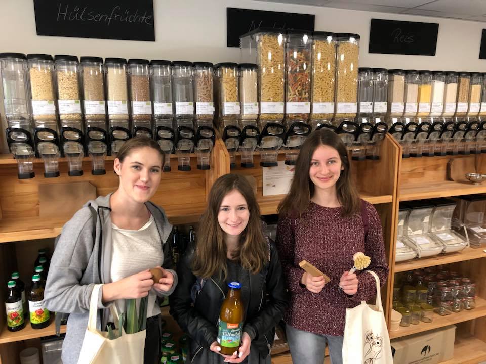 ( Auf dem Bild v.l.n.r: Katharina, Désirée und Sara von der Grünen Jugend im Unverpackt Laden „Kernidee“)