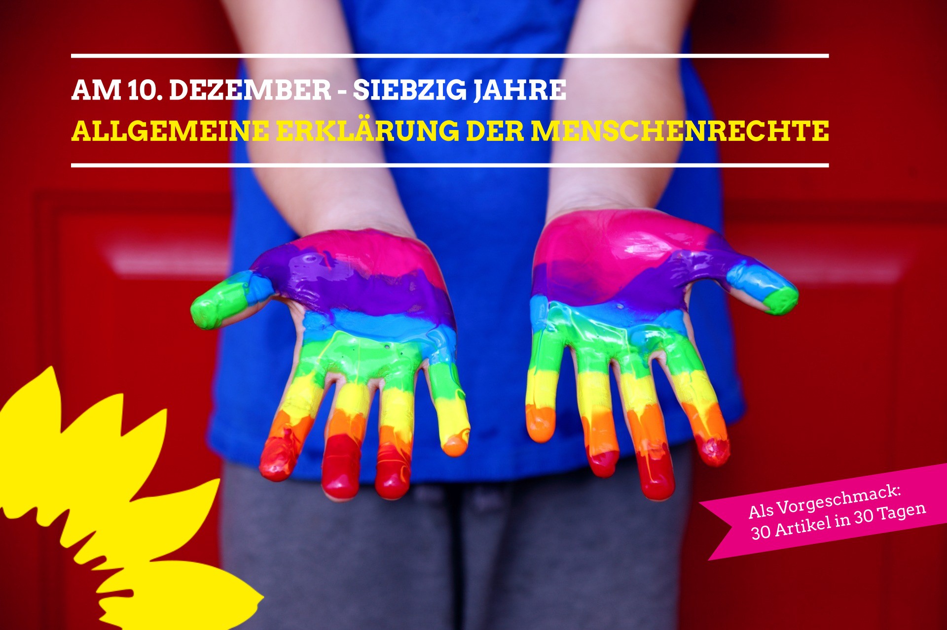 in 30 Tagen wird die Erklärung der Menschenrechte 70 Jahre alt. Und weil diese Menschenrechte 30 Artikel umfassen, wollen wir euch – quasi wie als Countdown – jeden Tag einen Artikel vorstellen. Schließlich hat es zahllose Kriege und damit viel Leid gekostet, diese Werte zu formulieren und allgemein gültig zu machen.