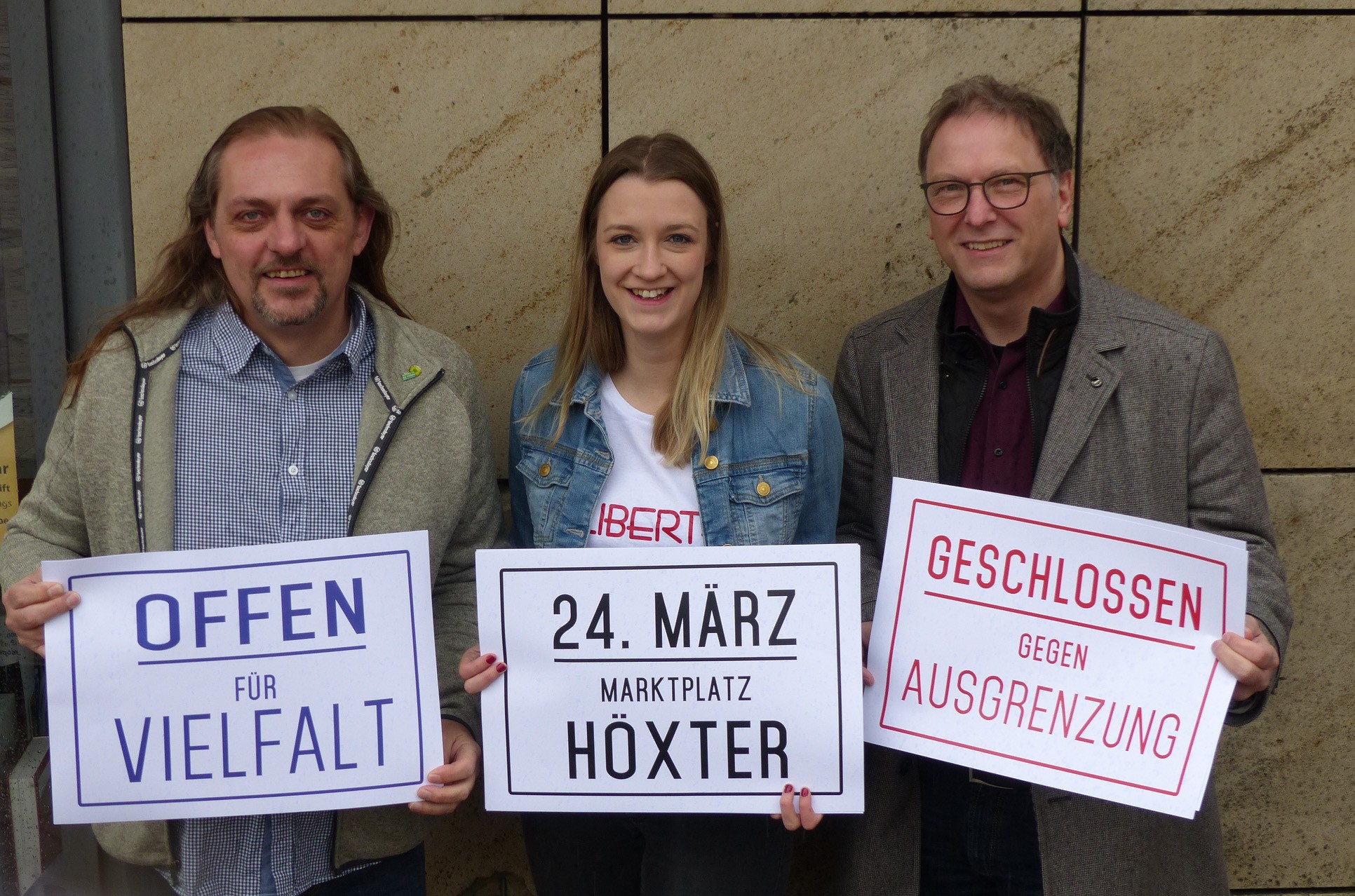 „Wir wollen den 24. März zu einem Fest der Demokratie im Kreis Höxter werden lassen. Wir wollen gemeinsam aus allen Städten des Kreises an diesem ersten Sonntag im Frühling für die uns verbindenden Werte Freiheit, Vielfalt und Respekt eintreten“, beschreibt Nora Wieners die Intention des „Bündnisses für Demokratie und Toleranz“. Sie ist Initiatorin der Aktion neben Helmut Lensdorf und Ricardo Blaszczyk, den Kreisvorsitzenden der Sozialdemokratie wie der Grünen.