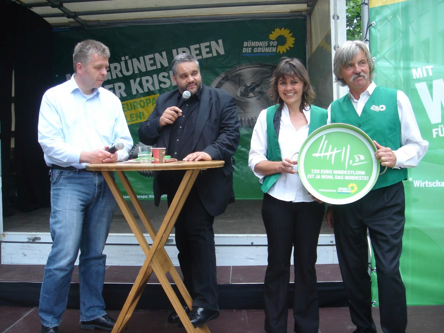 Günther Bunte-Esders, auf dem Foto rechts auf der Europa-Wahlkampfbühne 2009, hat von der Gründung an, die grünen Aktivitäten im Paderborner Land inspiriert, unzählige Wahlkämpfe und Diskussionen bestritten, als die Handvoll Grüne gerne mal vom „Milieu“ in die Schmuddelkinderecke gestellt wurde.