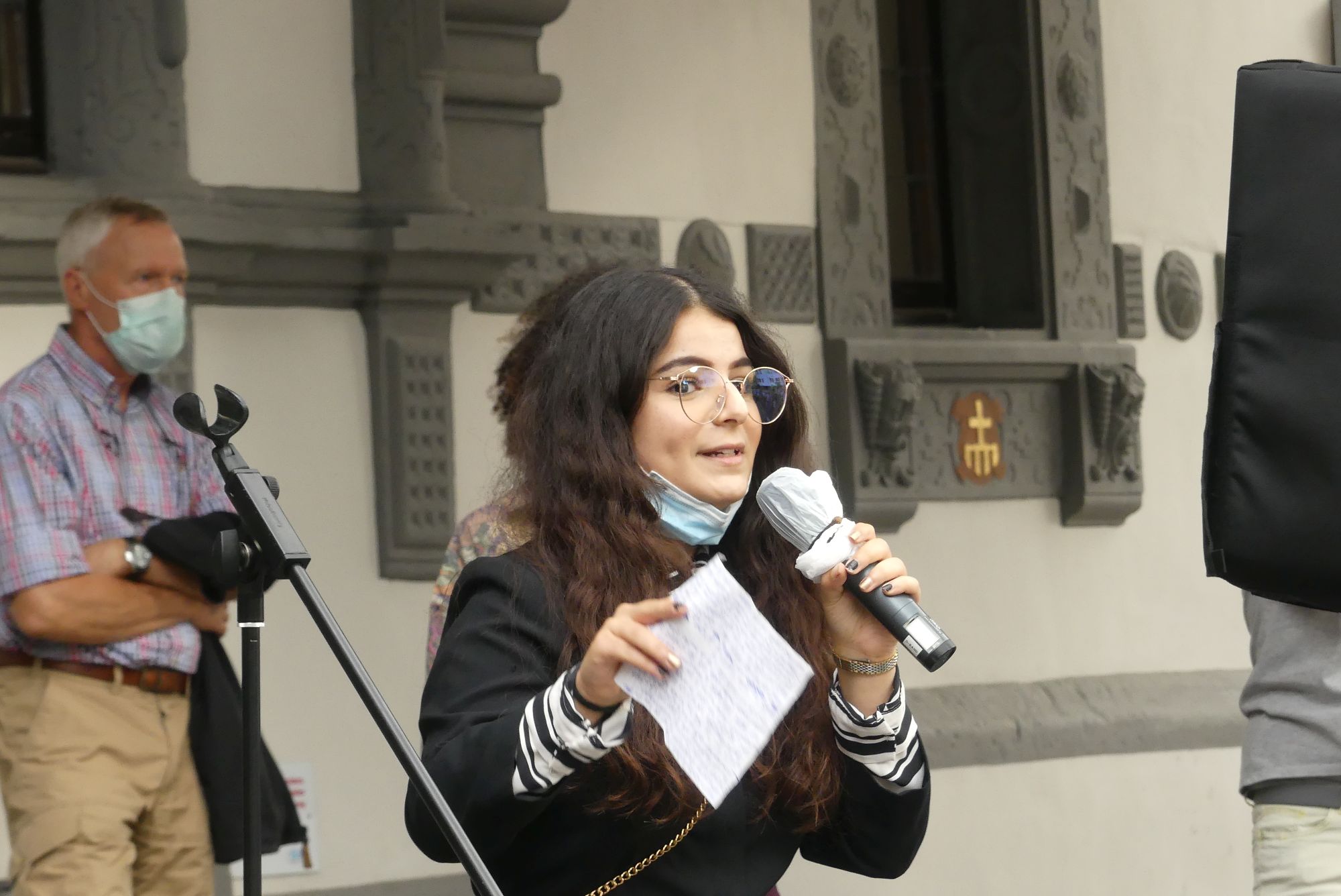 Für die Grünen Jugend Paderborn erklärt die Sprecherin Büsra Öztari: „Wir haben uns heute hier versammelt, um Gesicht zu zeigen und um zu zeigen, dass wir Rassisten*innen keinen Raum bieten. Na ja, aber manchmal kommt doch jemand, wie Beatrix von Storch, um die Ecke und nimmt sich einfach diesen Raum und nutzt ihn ganz bewusst aus.