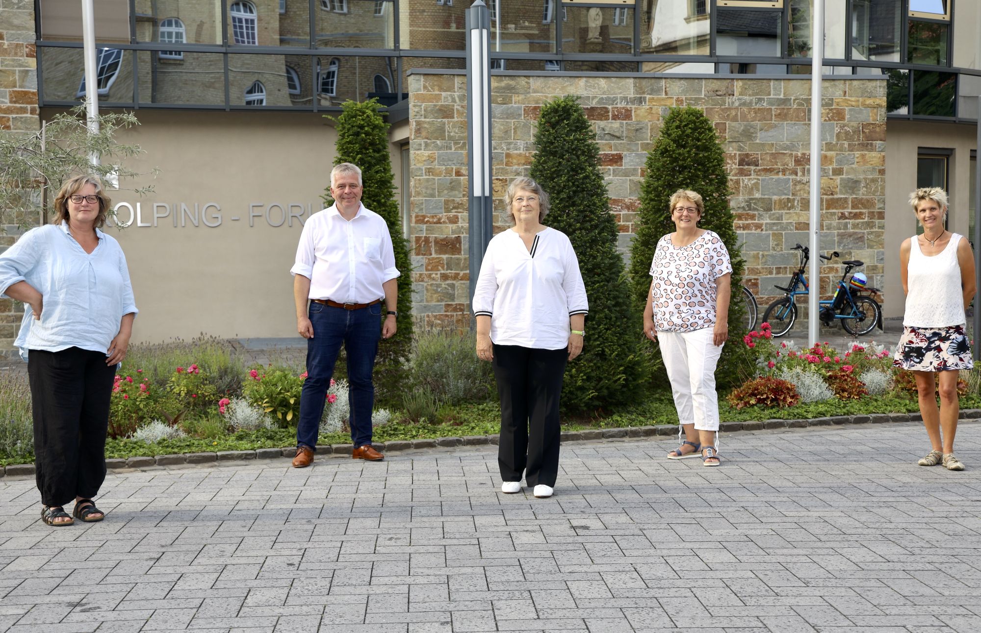 Vor dem Kolpingforum von links: Norika Creuzmann, Klaus Schröder, Bärbel Höhn, Petra TEbbe und Sabine Kramm.