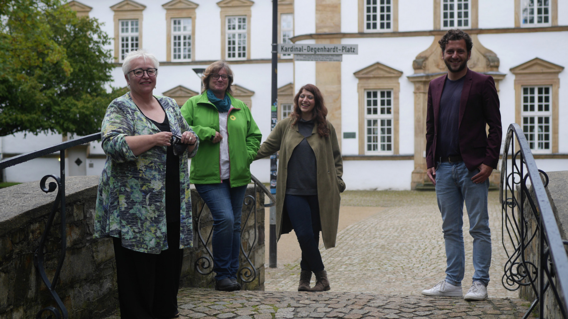 Das Foto, vor der Diskussion im Deelenhaus, zeigt Sigrid Beer und Felix Banazak, zusammen mit Landratskandidatin Norika Creuzmann und Nadine Dubberke, die in Bad Wünnenberg als grüne Bürgermeisterkandidatin antritt.