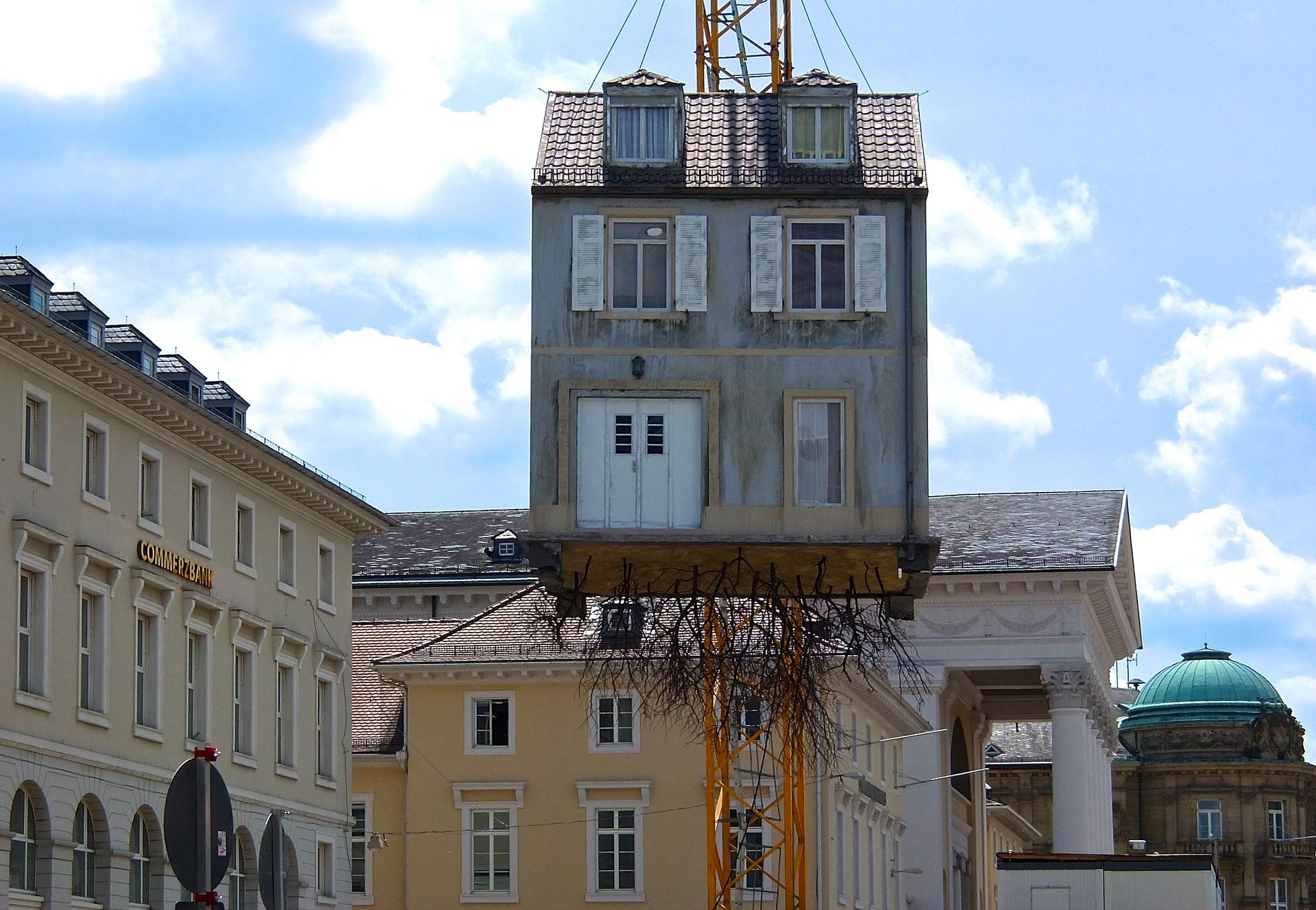 In Karlsruhe, wo sich die Grünen als Partei gründeten, vierzig Jahre ist das her, sollte jetzt die Bundesdelegiertenkonferenz tagen und das neue, intensiv diskutierte Grundsatzprogramm debattieren und beschließen. #umschalten heißt die Devise, die BDK trifft sich vom 20.-22. November digital. Da werden wir aus gewohnten Denkmustern herausgerissen. Ähnlich dem Kunst-am-Bau-Projekt aus Karlsruhe auf dem Foto.
