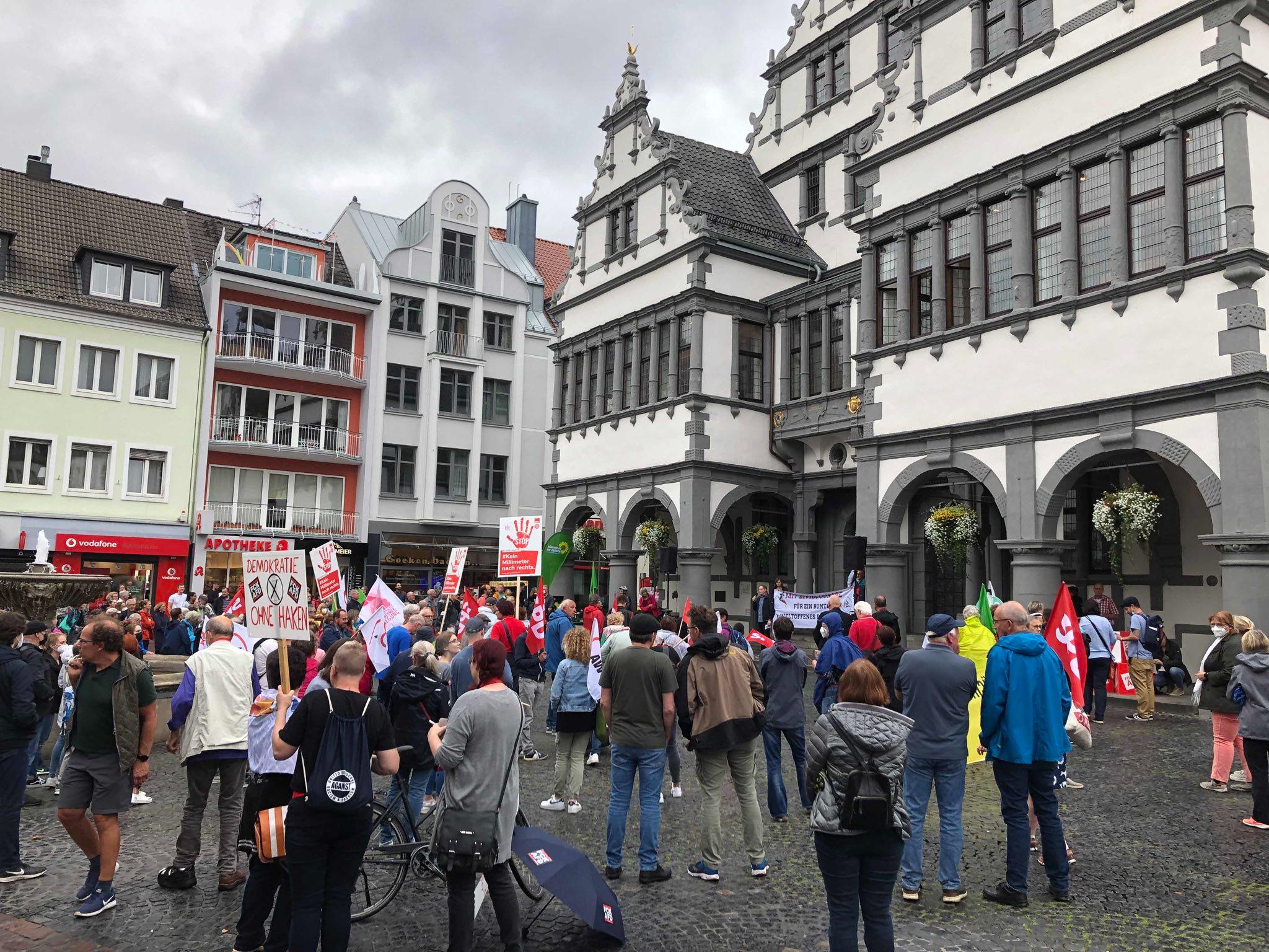 Mit gleich zwei Gegenkundgebungen reagierten die Paderborner*innen auf den AfD-Wahlkampfauftritt von Björn Höcke und auf dem Marktplatz. Vom der Florianwiese zog das Bündnis gegen Rechts (BgR) zum Domplatz. Vor dem Rathaus versammelte sich das Bündnis für Demokratie und Toleranz zu einer Kundgebung. Mit dabei waren die grünen Bundestagskandidaten aus Paderborn und Lippe: Jörg Schlüter und Nik Riesmeier.